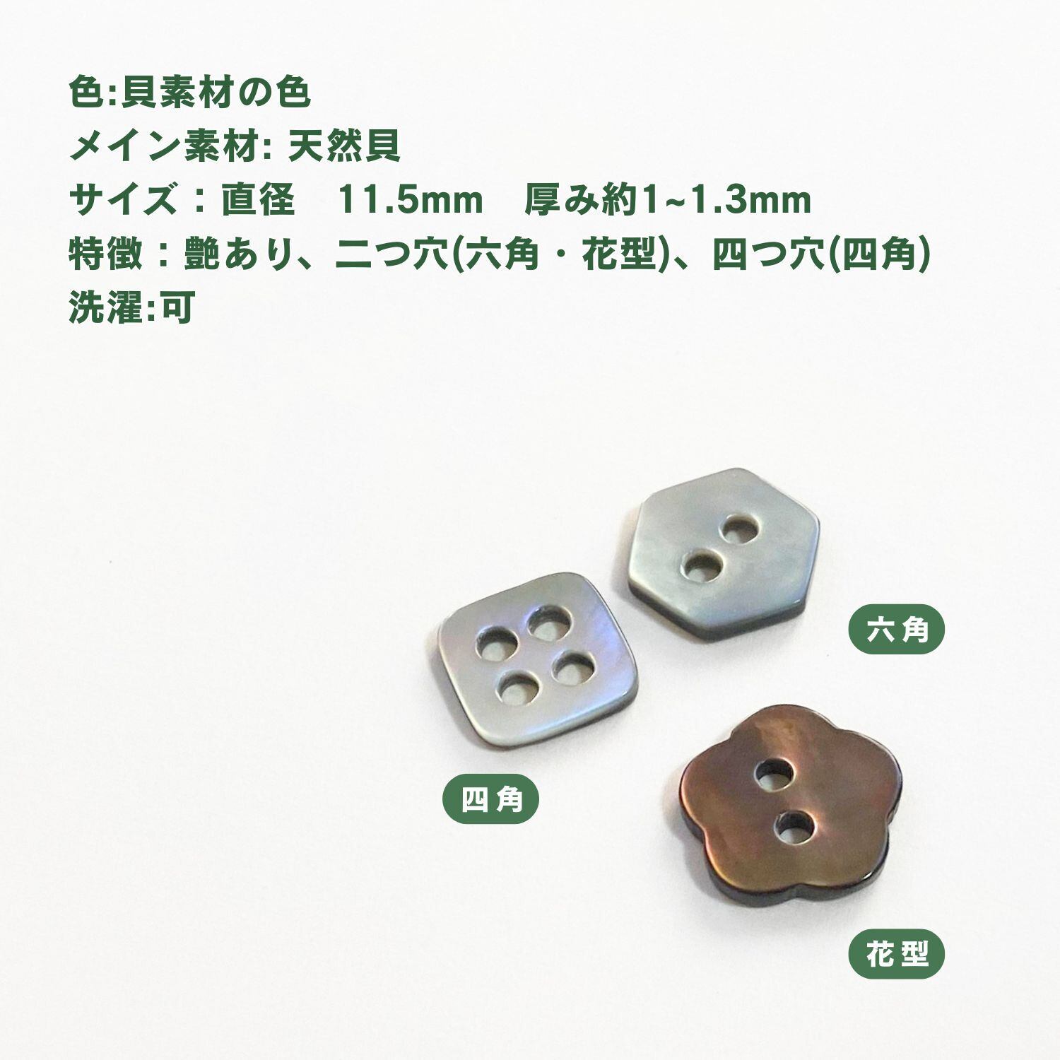 haoa 貝ボタン 6個セット 四角形 六角形 花型 シャツ ワンピース ブラウス 洋裁 洋服 手芸 クラフト 直径11.5mm