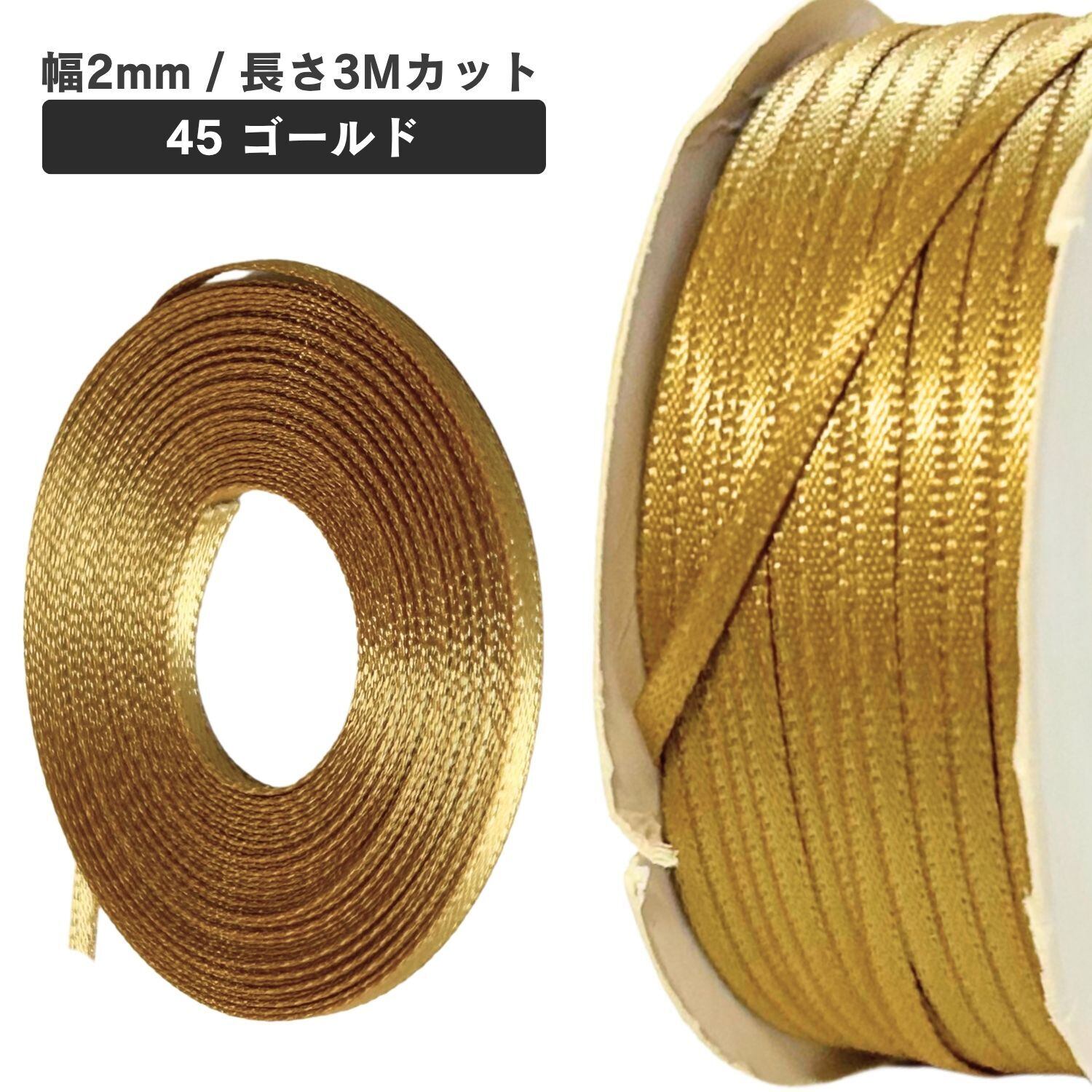 haoa 両面サテンリボン 2mm幅 3mカット モノトーン・ゴールド・シルバー系 極小 ドール 手芸 アクセサリー ラッピングリボン DIY 手作り ハンドメイド