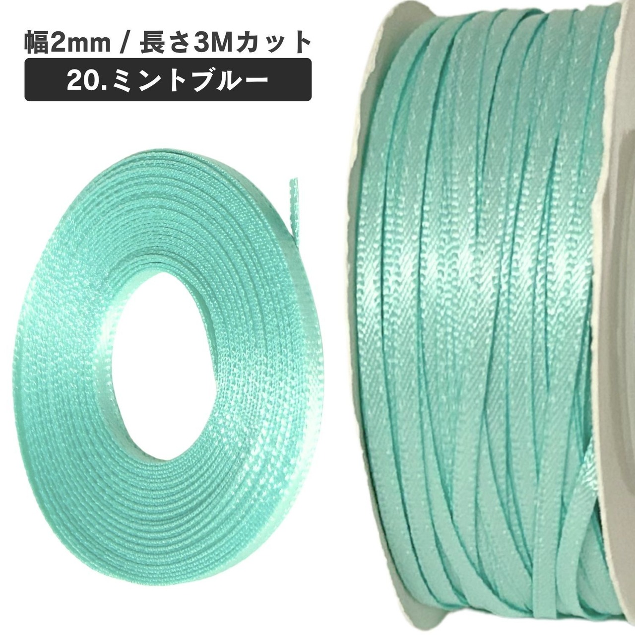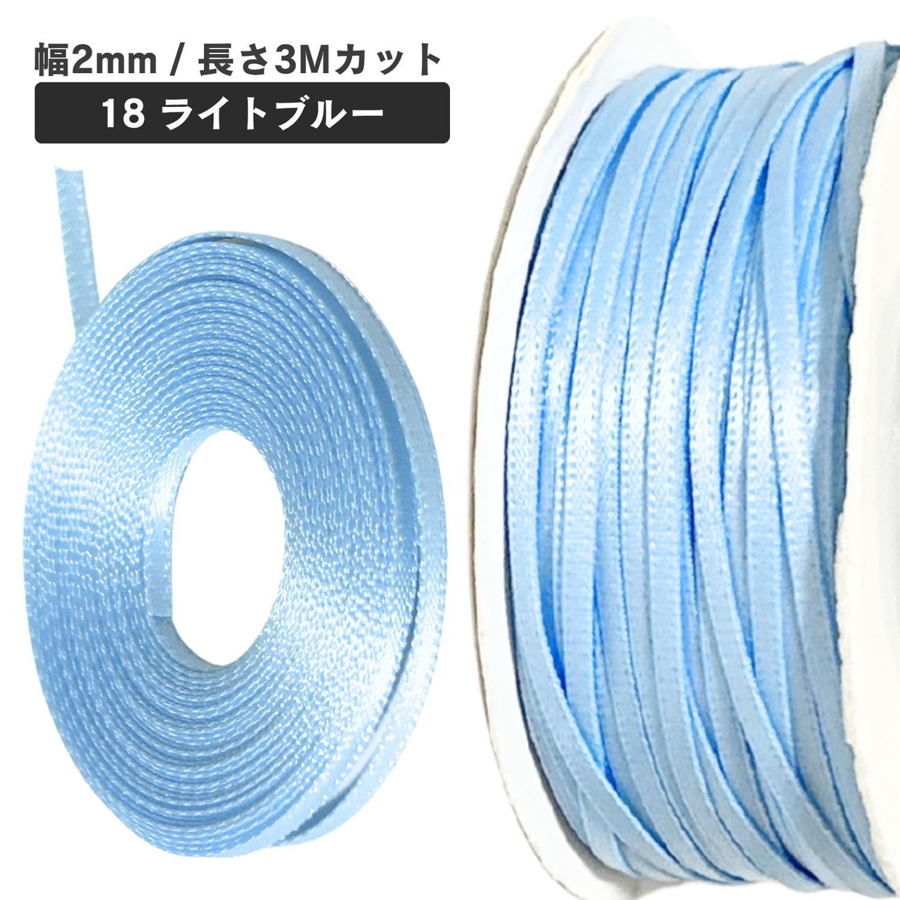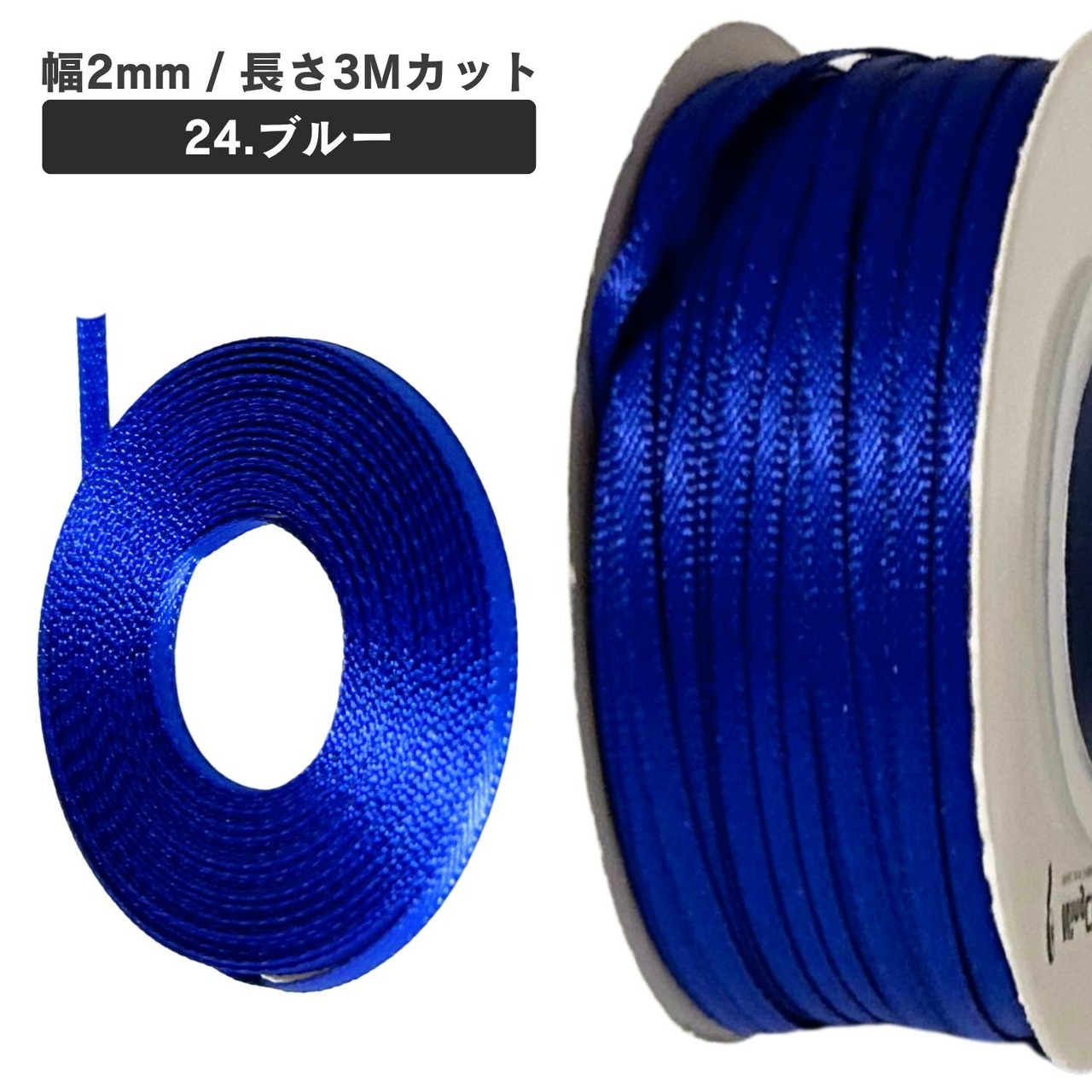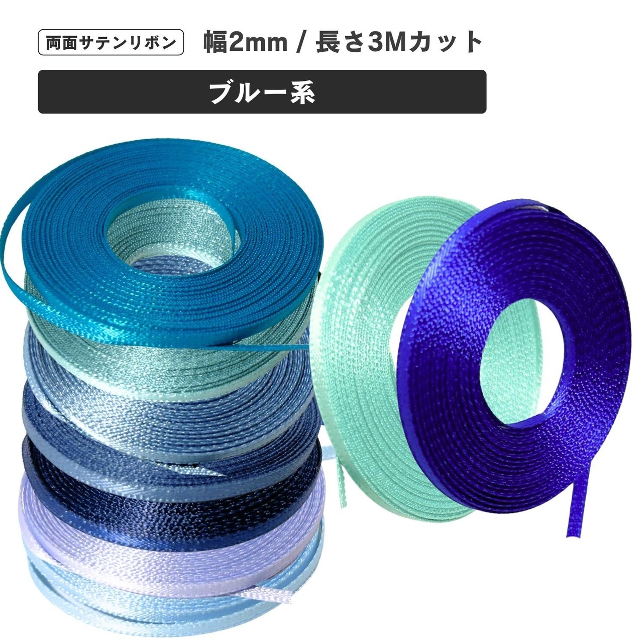 haoa 両面サテンリボン 2mm幅 3mカット ブルー系 極小 ドール 手芸 アクセサリー
