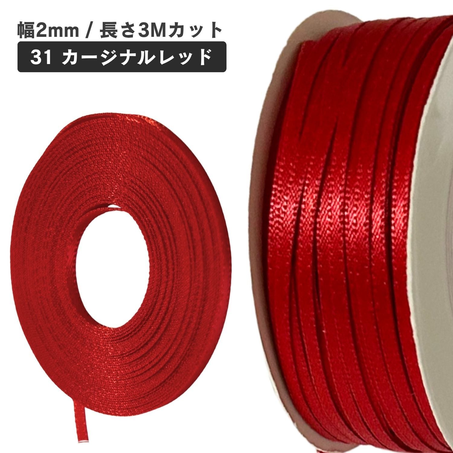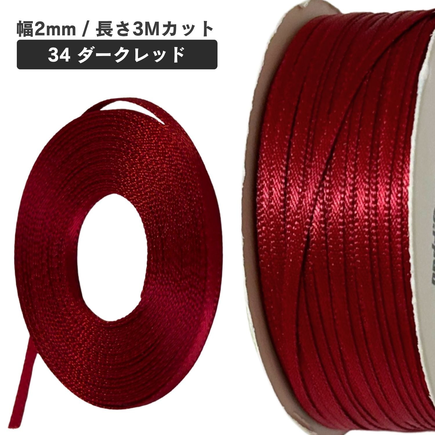 haoa 両面サテンリボン 2mm幅 3mカット レッド・パープル系 極小 ドール 手芸 アクセサリー