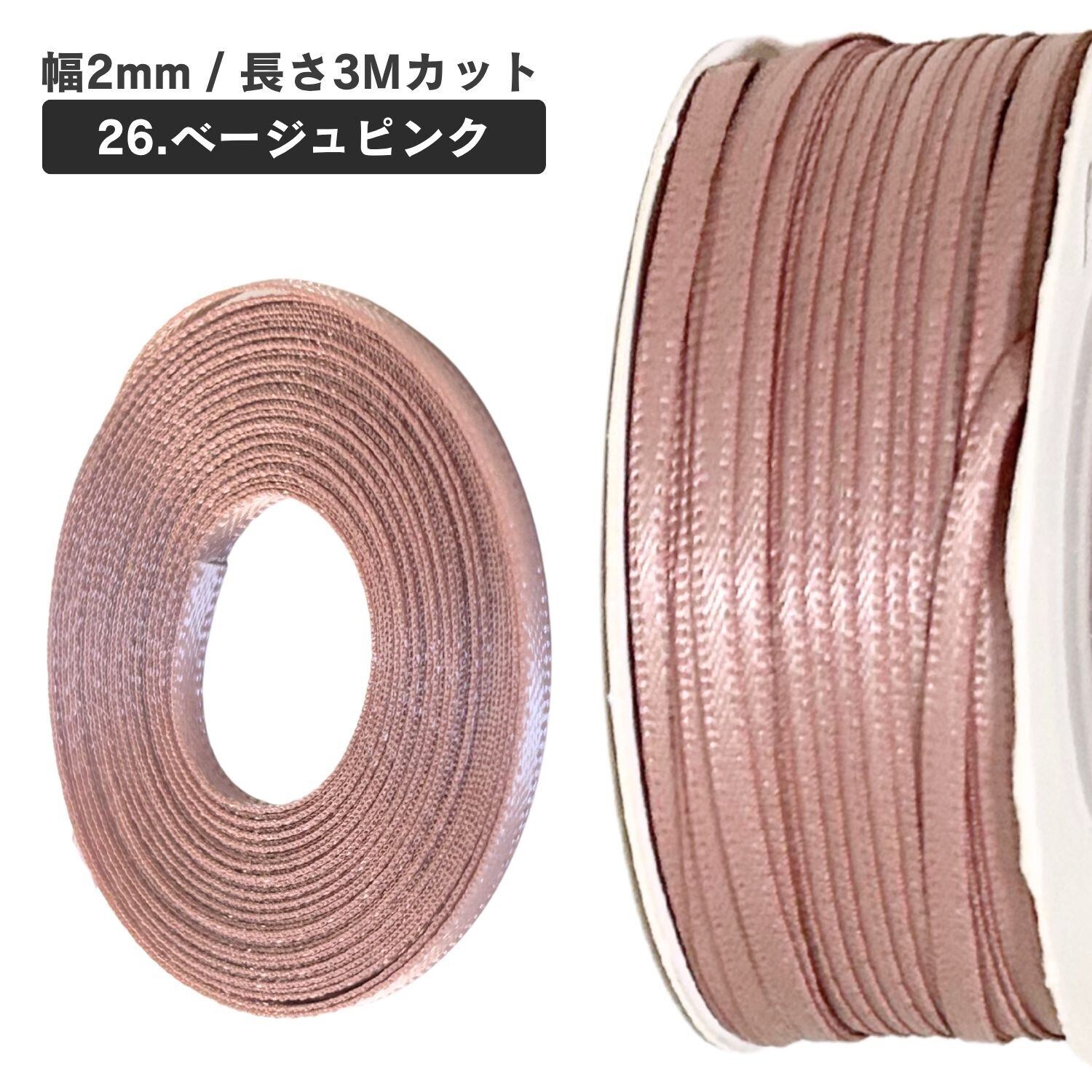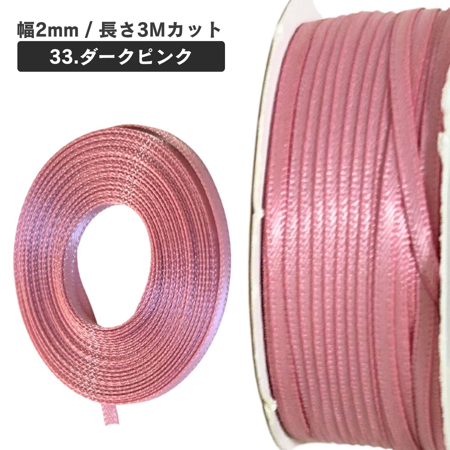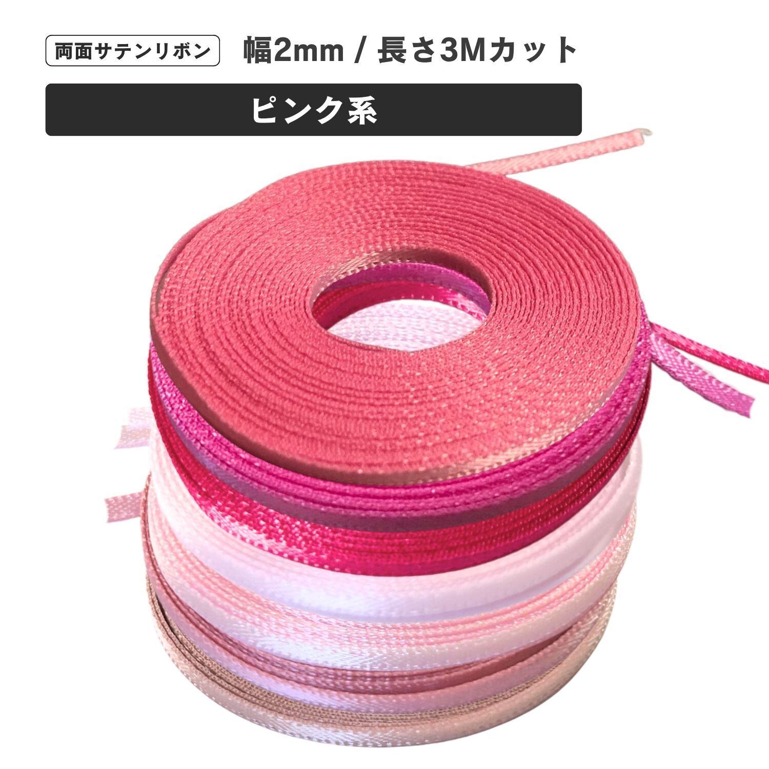 haoa 両面サテンリボン 2mm幅 3mカット ピンク系 極小 ドール 手芸 アクセサリー
