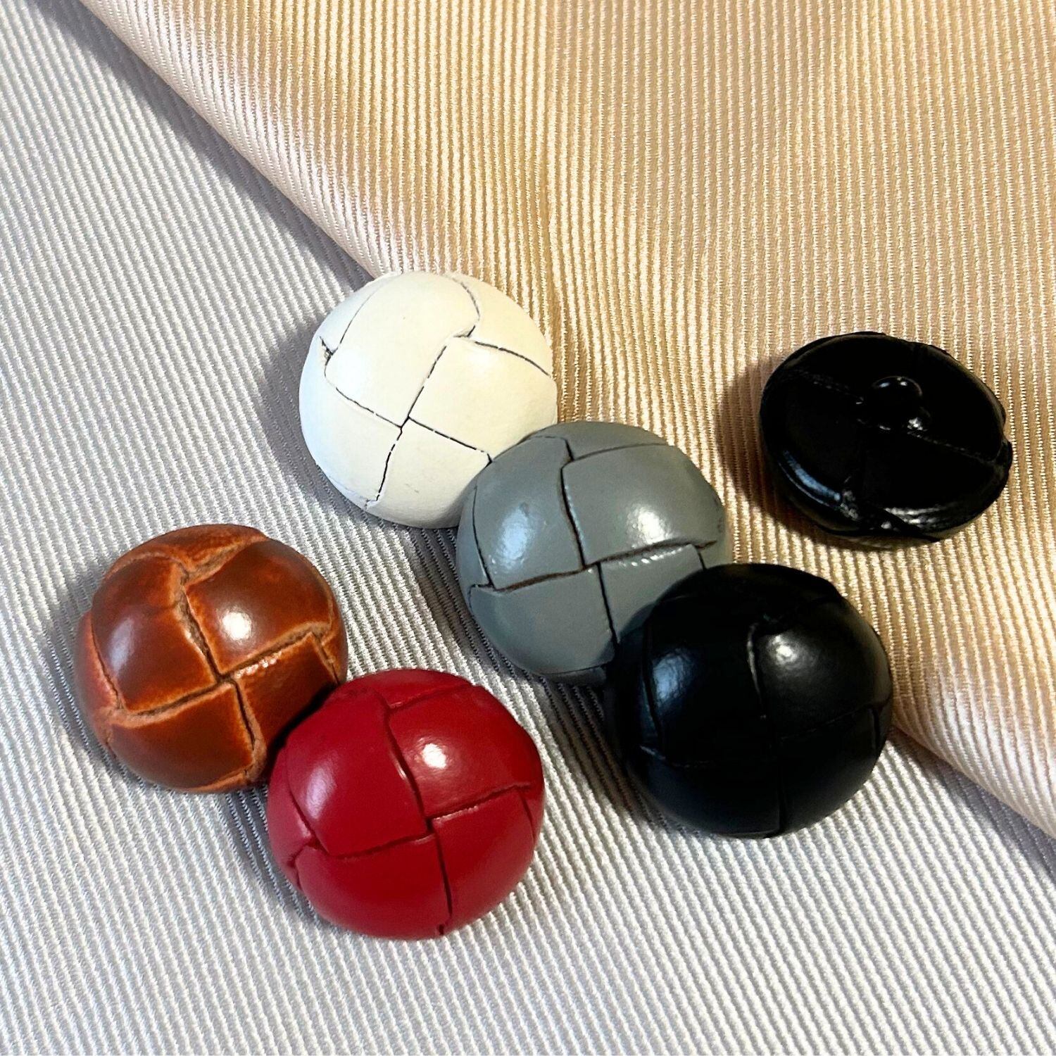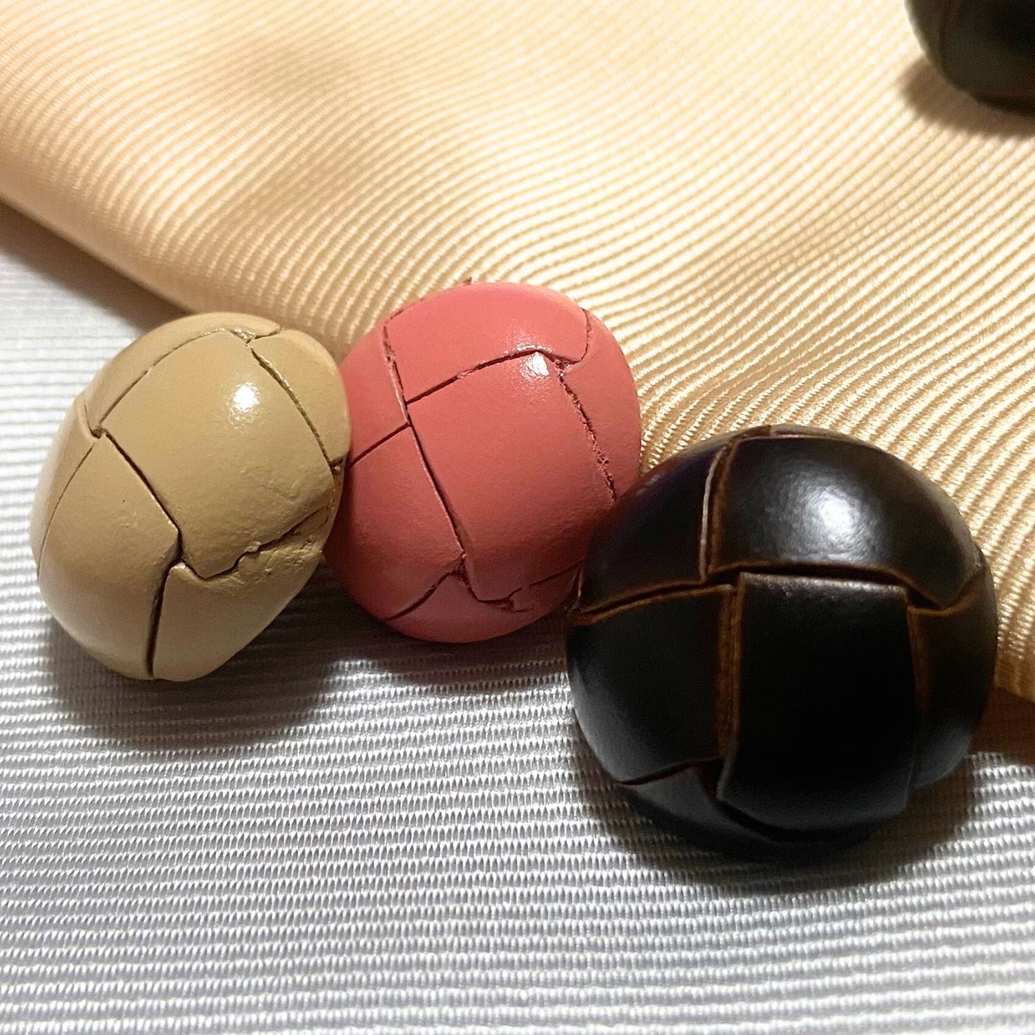 ★詳細:トップは本革くるみで根元は足つきのボタンです。表面は塗料で塗装してあります。レザーの包みボタンはよりシックで大人のお洋服にも合わせやすい雰囲気があります。