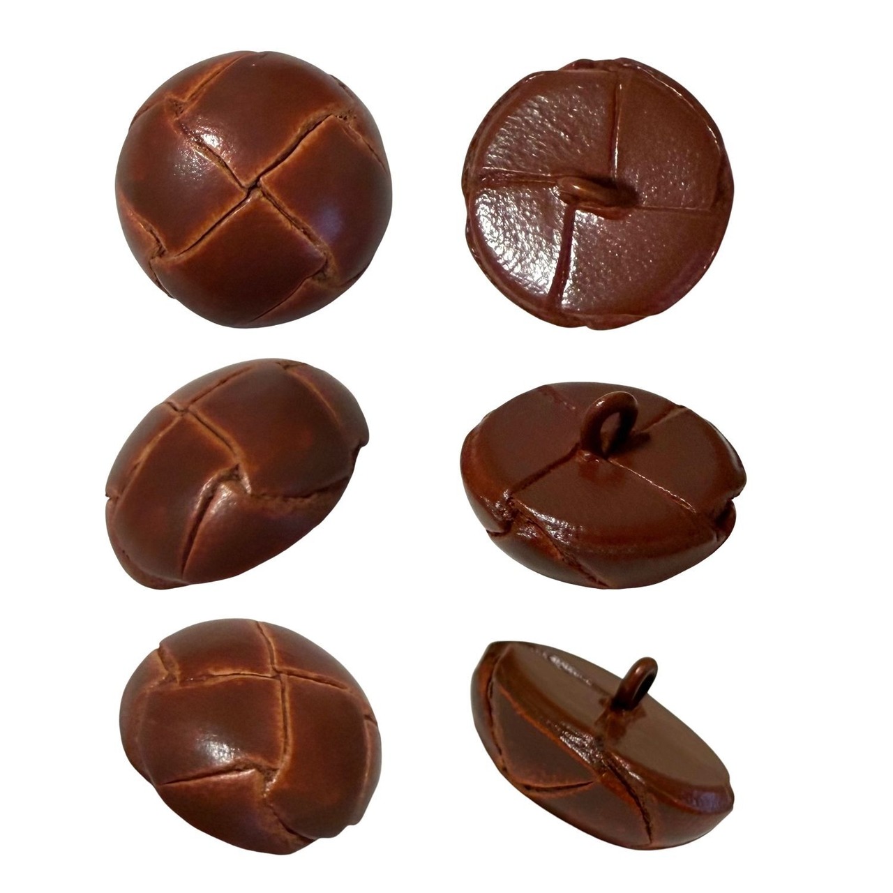 haoa 革ボタン 6個セット 足付き 直径18mm バスケット レザー くるみ 牛革 カーディガン アウター洋裁