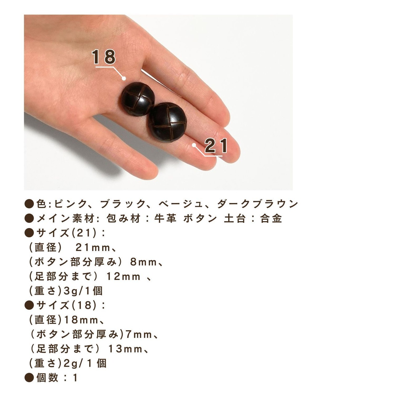 ★詳細:トップは本革くるみで根元は足つきのボタンです。表面は塗料で塗装してあります。レザーの包みボタンはよりシックで大人のお洋服にも合わせやすい雰囲気があります。