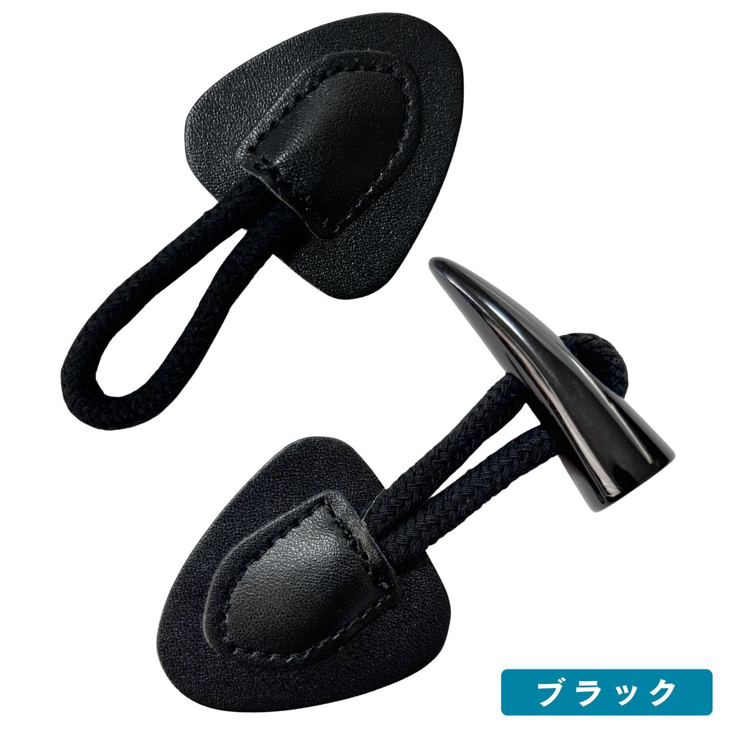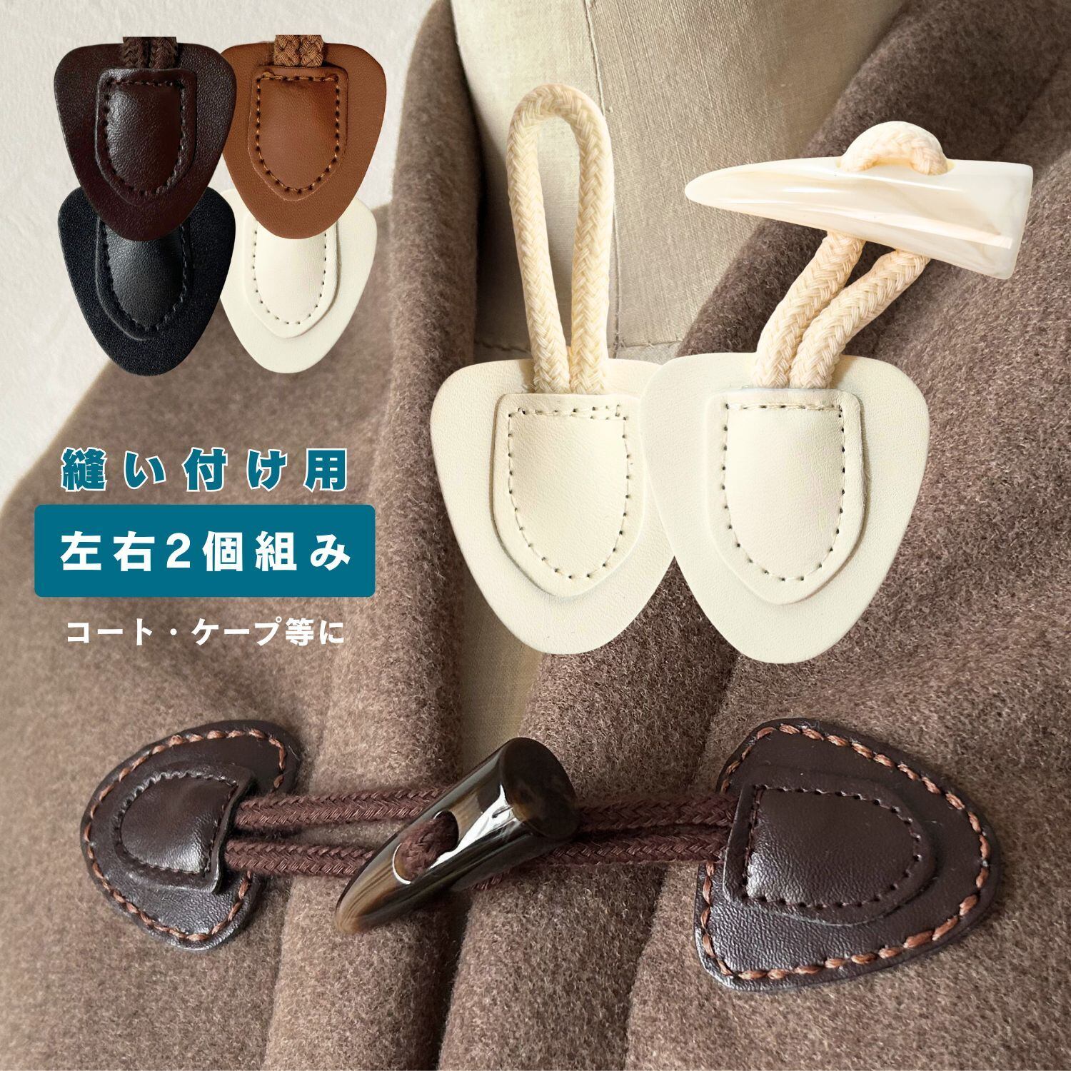 コートやカーディガンなどお洋服の修理、リメイクにオススメなトグルボタンとループ、ループ留めがセットになったボタンでPUレザーの部分をミシンまたは手縫いでお洋服に縫い付けて使います
