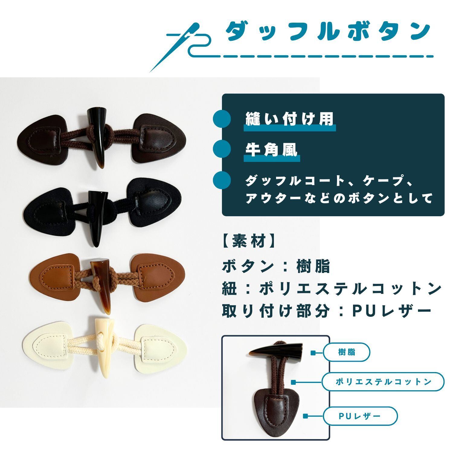haoa ダッフル ボタン 縫い付け用 左右2個組み 牛角風 PUレザー コート ジャケットフロント 袖口 洋裁 洋服 手芸 クラフト