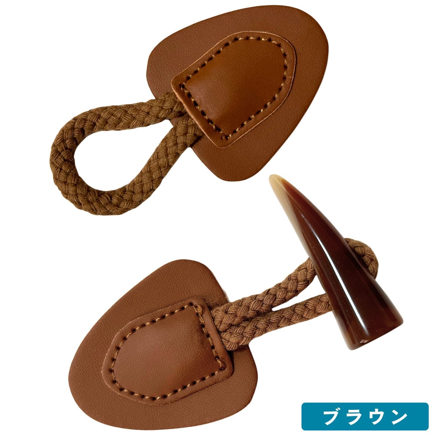 ボタン ぼたん 釦 トグルボタン ダッフル釦 ダッフルボタン コートぼたん 牛角 水牛角風 ダッフルコート牛の角ボタン 角ボタン コート ケープ艶あり 洋裁 洋服 手芸 クラフト レザー風 レザー長 付け替え アレンジ リメイク シンプル オーソドックス 紐付き コートボタン アウターボタン 白 黒 キャメル 焦茶
