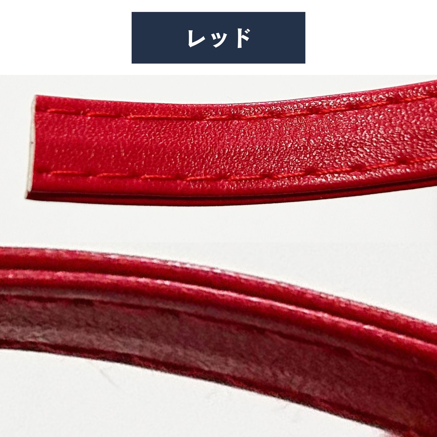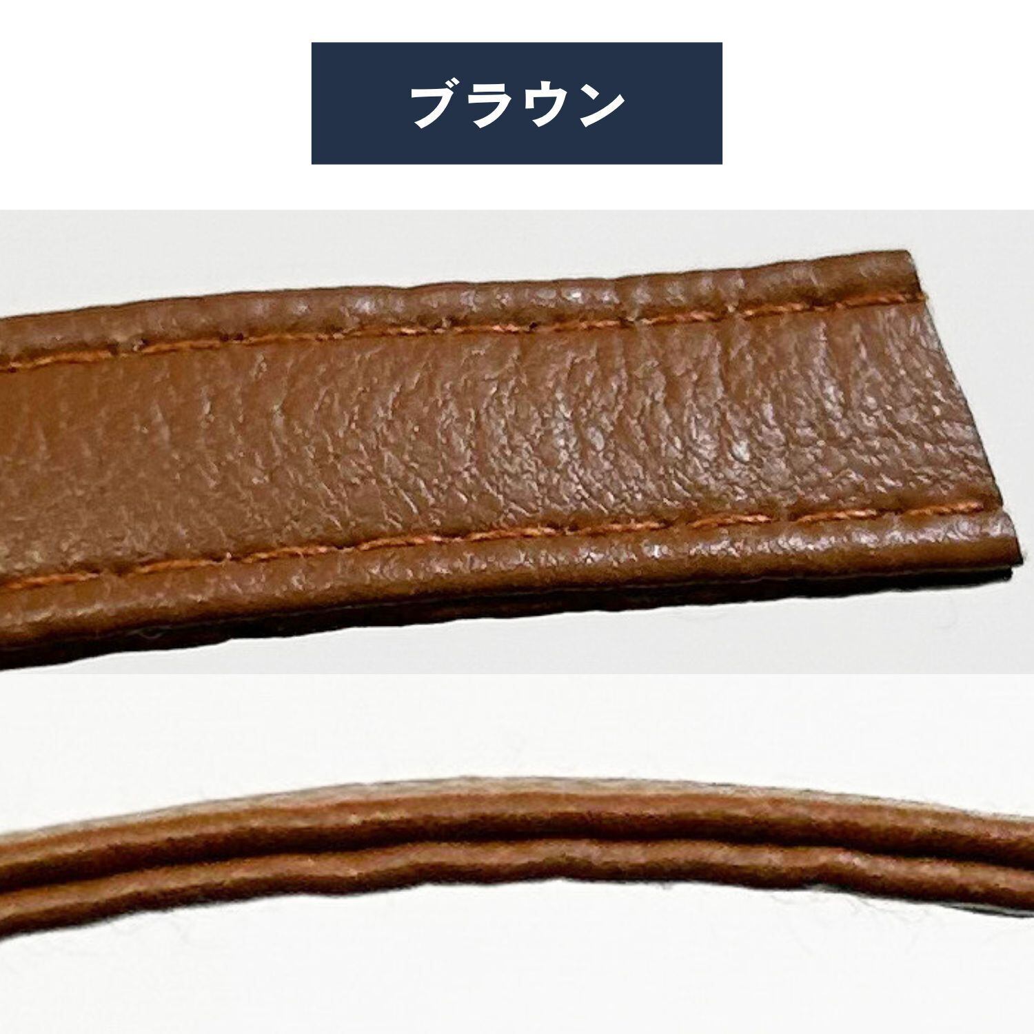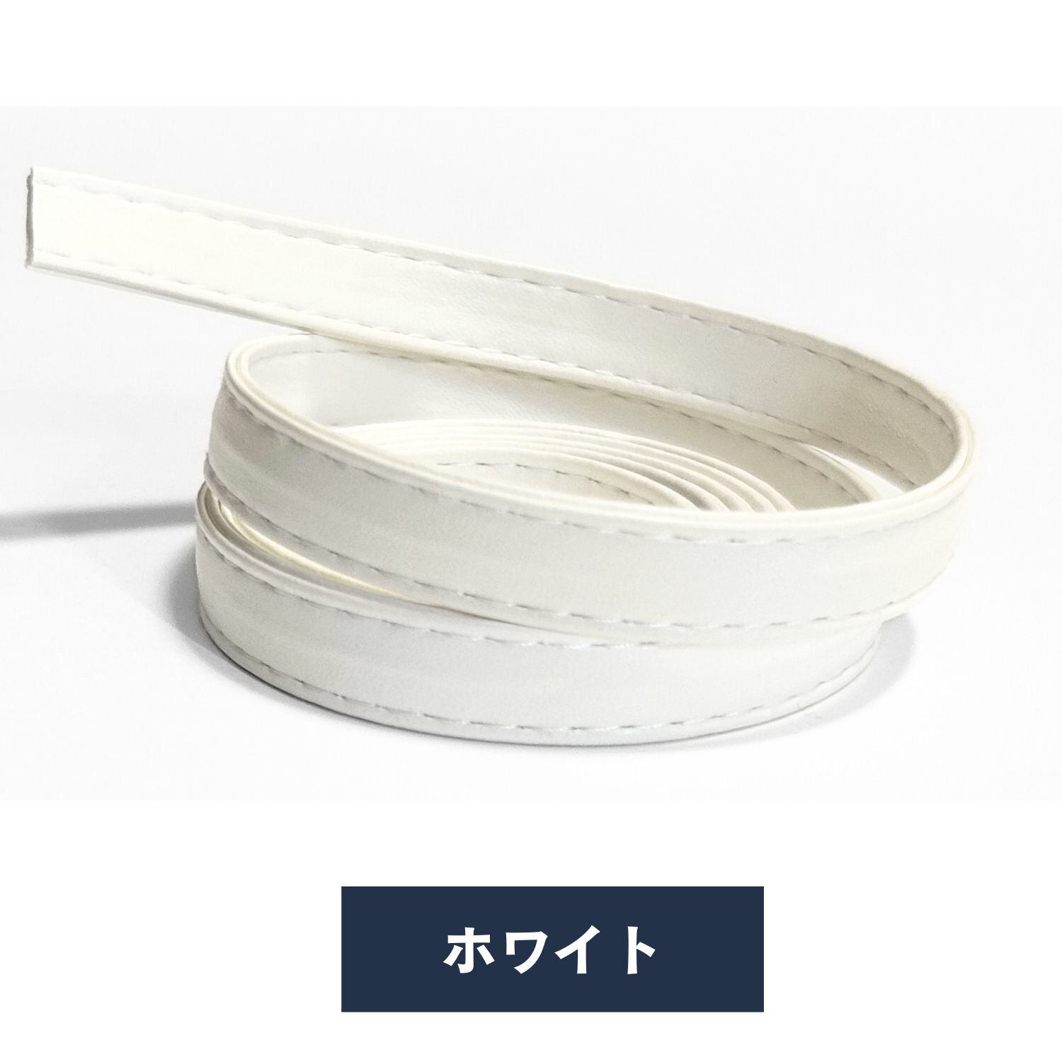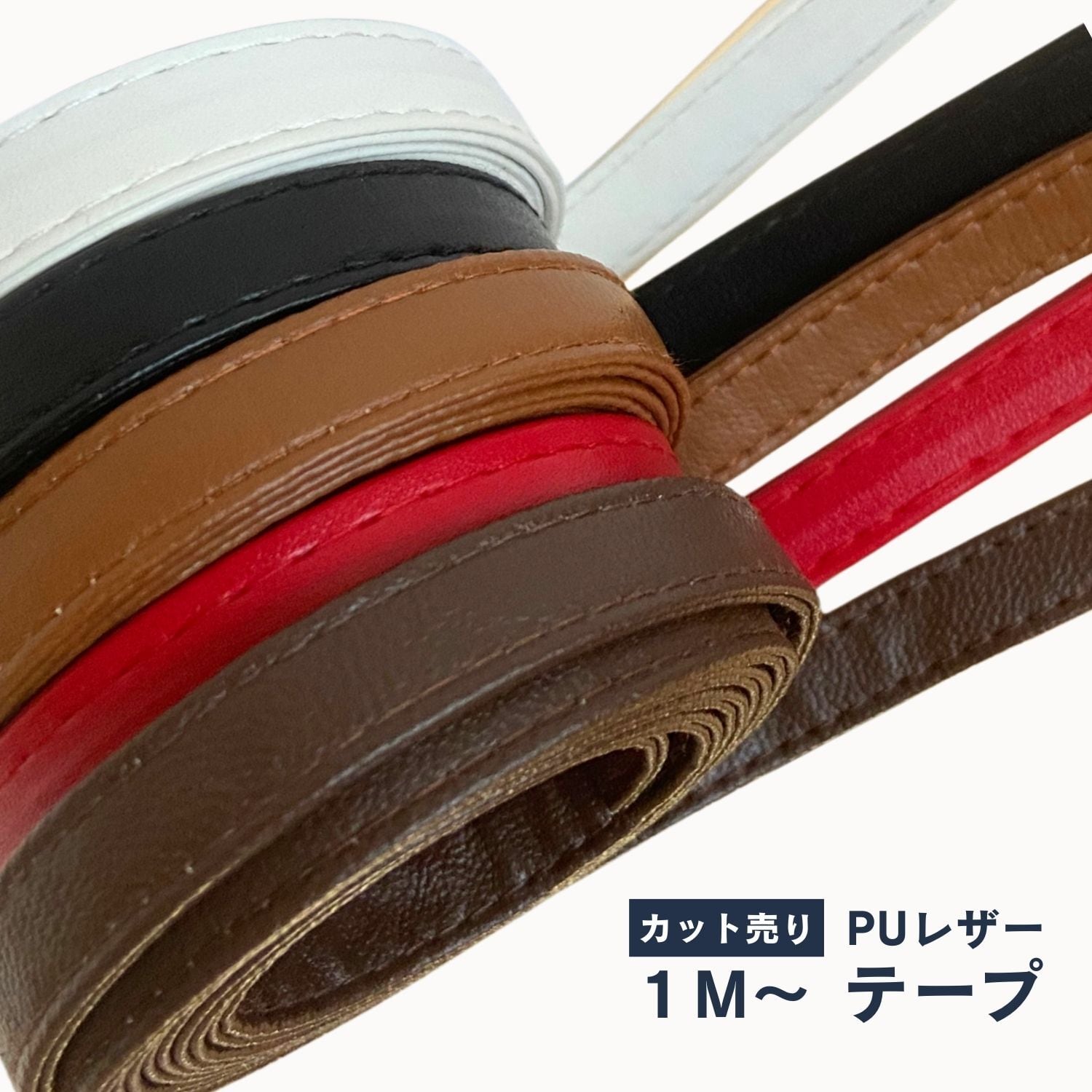 PUレザー二枚を突き合わせてミシンステッチを入れた合皮テープです。革テープの色は5色。ブラック、ホワイト、レッド、ブラウン、ダークブラウンのラインナップです。