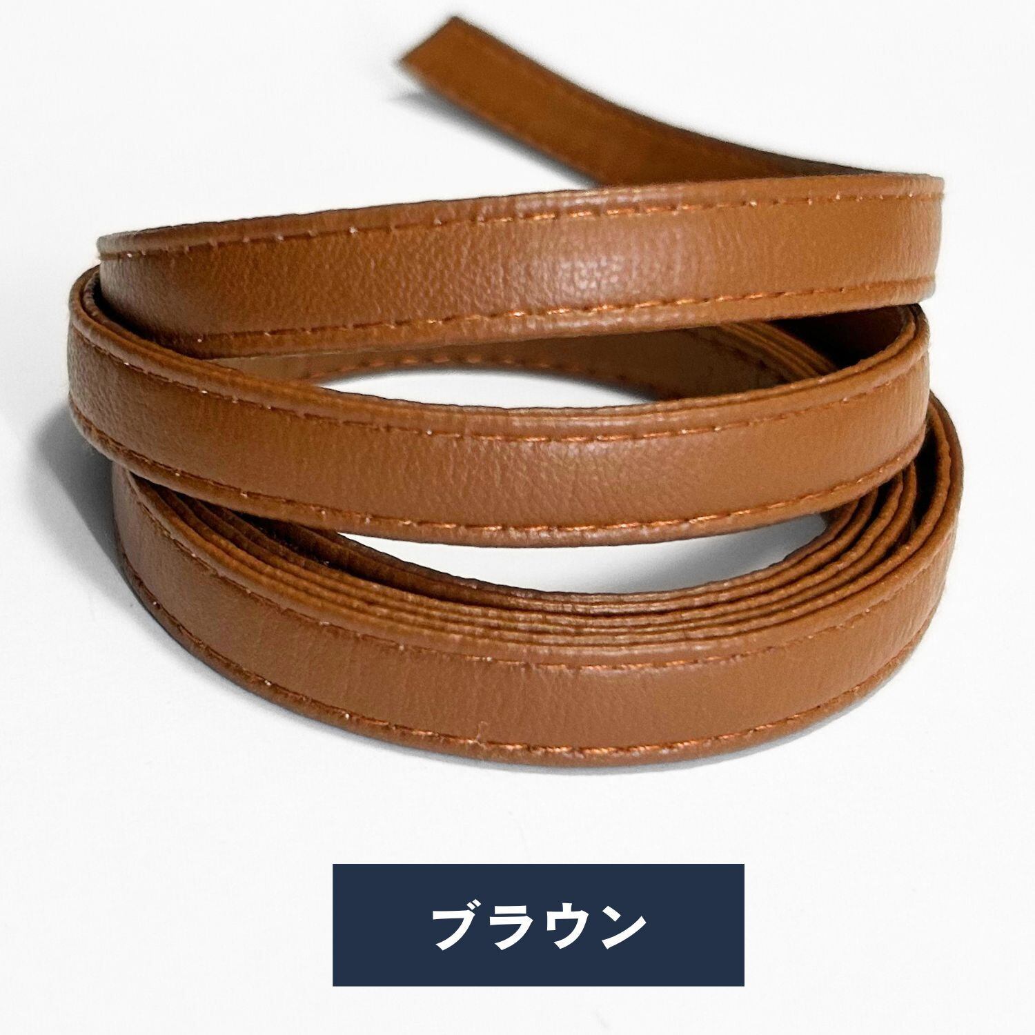 カット販売 1.0cm幅 合皮テープ ステッチ入り 手作り ベルト ストラップ バンドメイド ブラック レッド ホワイト ブラウン ダークブラウン