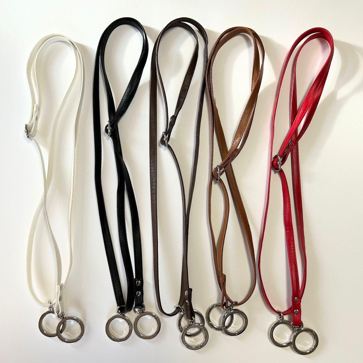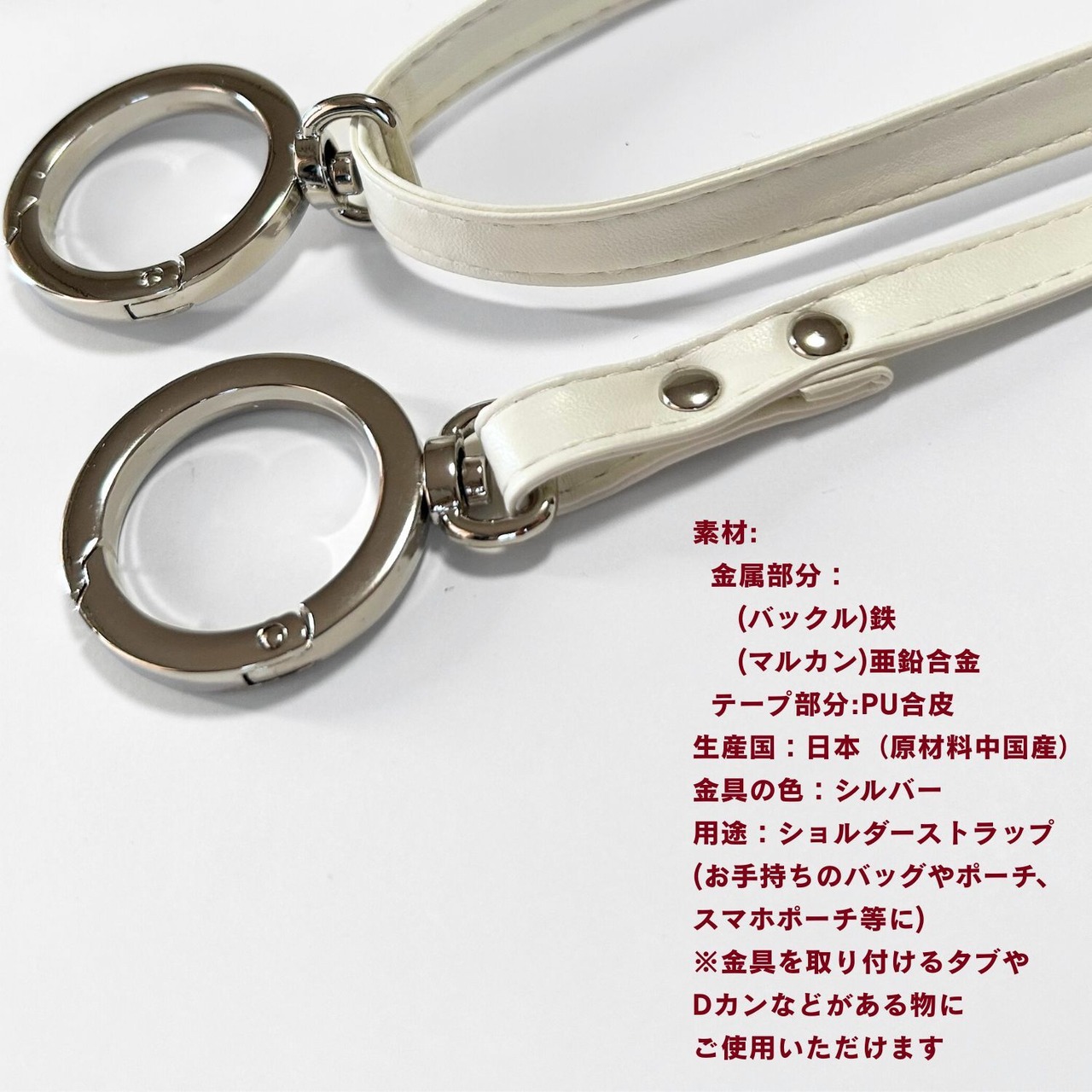 金具を取り付けるタブやDカンなどがある物にご使用いただける合皮素材のショルダーストラップです。 ブラック、レッド、ホワイト、ブラウン、ダークブラウンのカラーラインナップで お手持ちのバッグ等に交換用としてご使用いただけます。