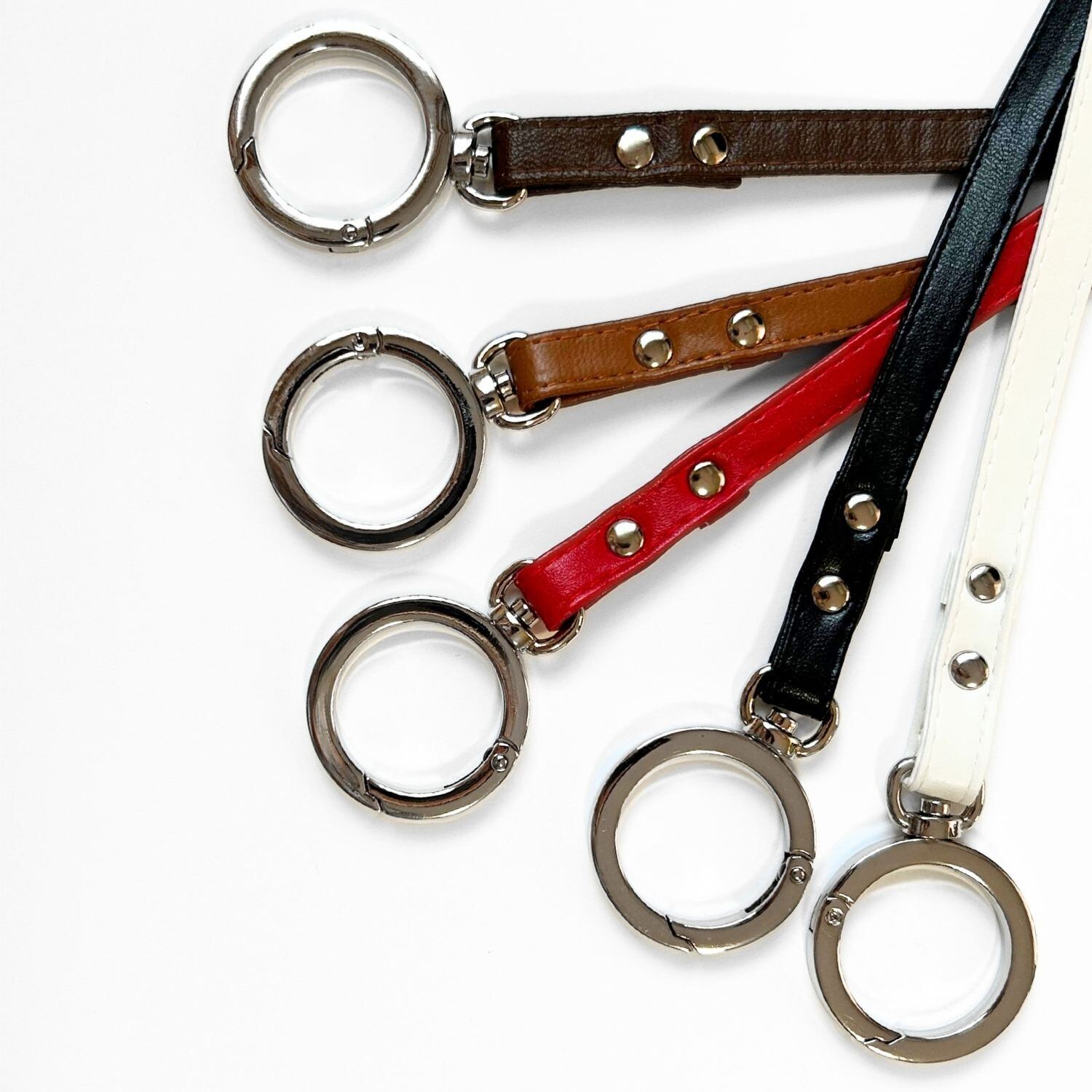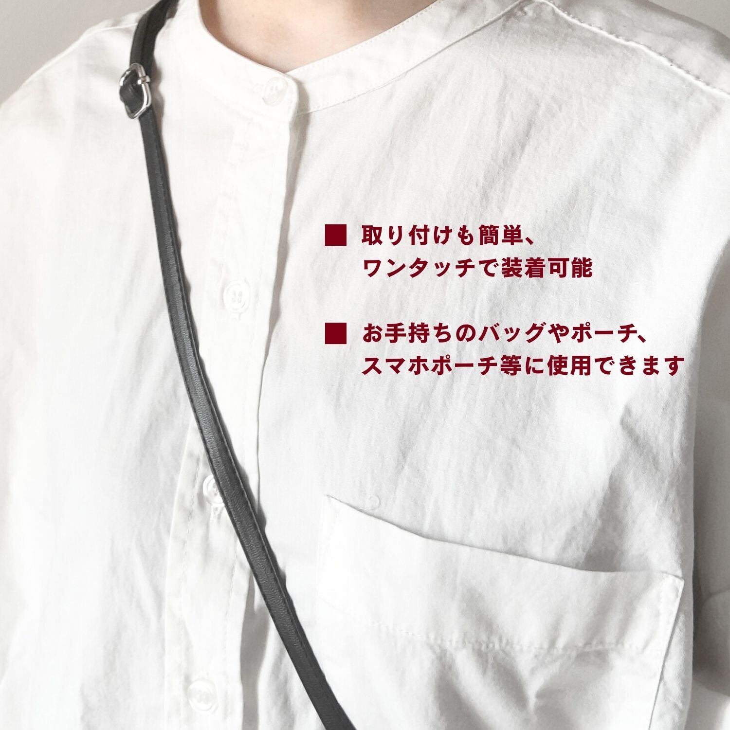 お手持ちのバッグやポーチ、スマホポーチ等に当商品の丸カンを通せる部分があればお使いいただけます。