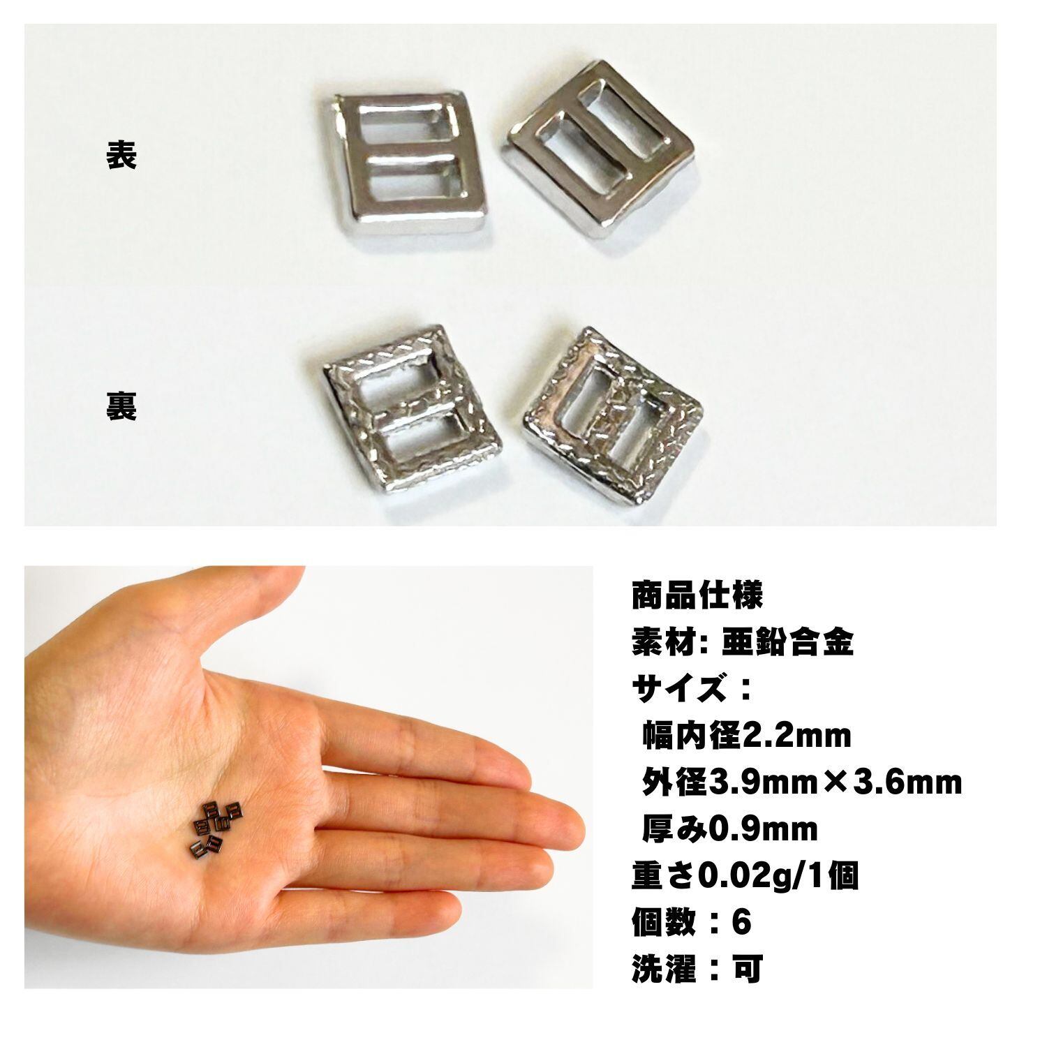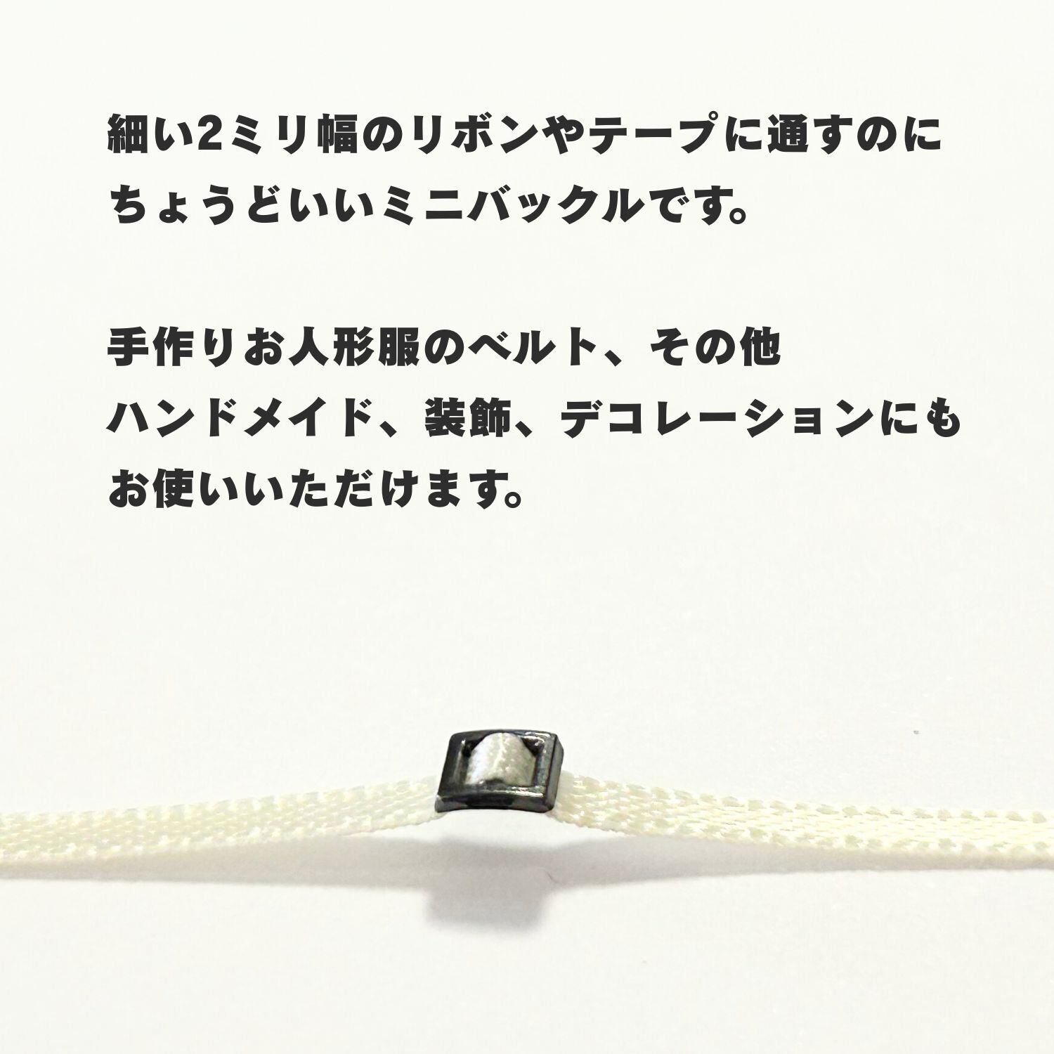 細い2ミリ幅のリボンやテープに通すのにちょうどいいミニバックルです。
