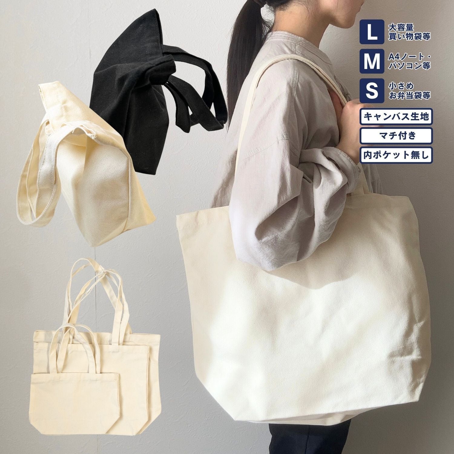 キャンバス生地 トートバッグ マチ付き 無地 ショルダー コットン 帆布バッグ ランチバック 肩掛け 手提げ 刺繍 ペイント DIY (Lサイズ)