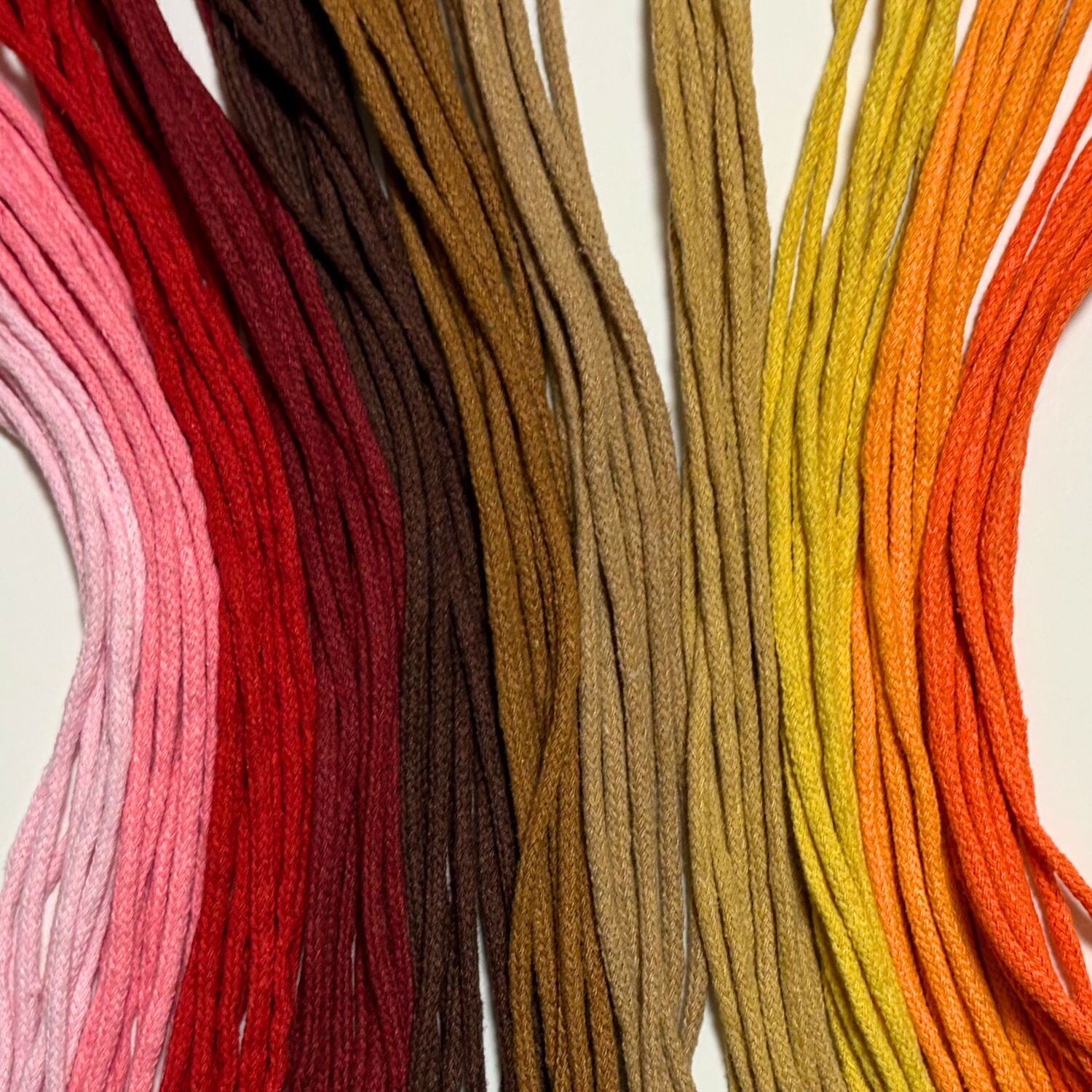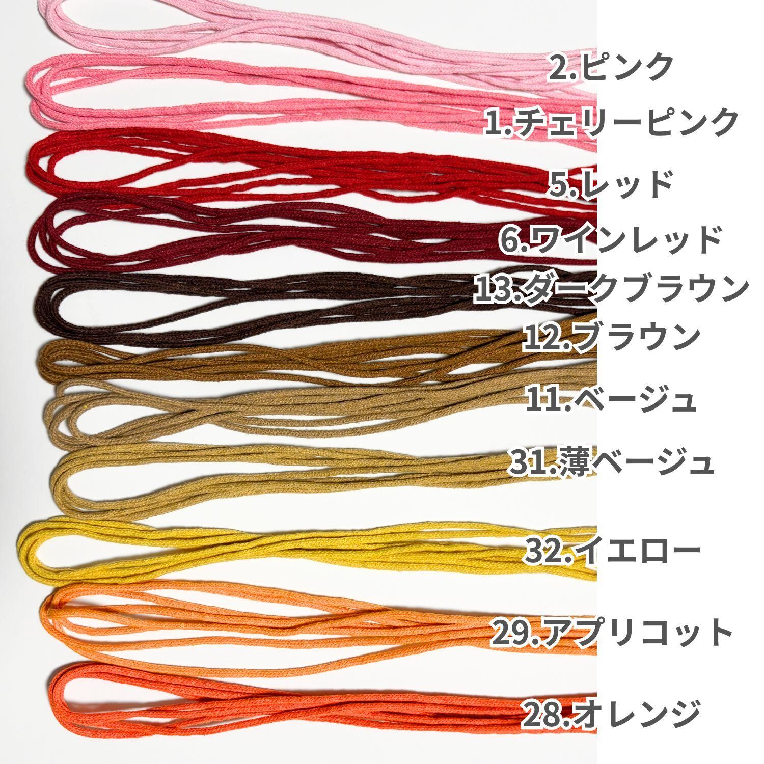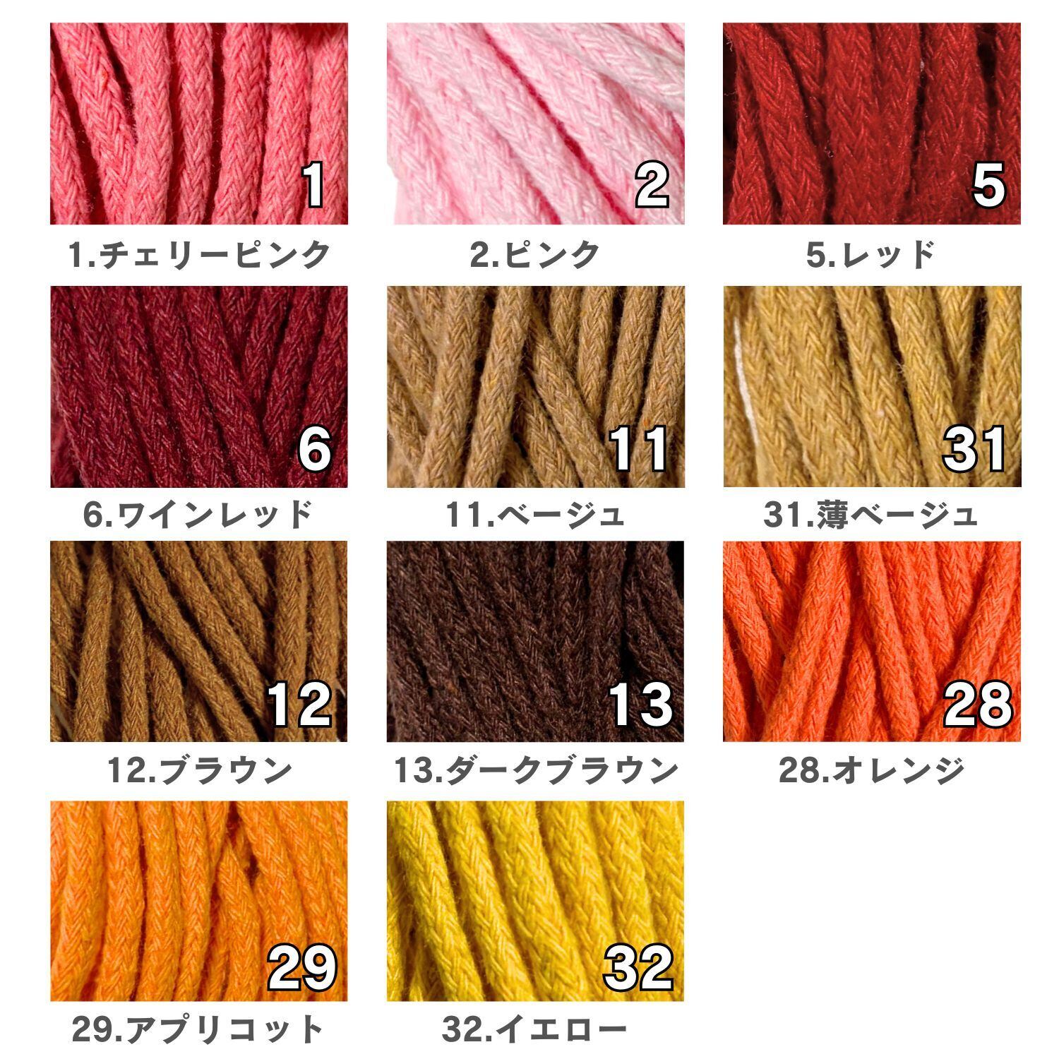 haoa 自然な風合いの丸紐 ロープ 約3mm幅 3mカット販売 イエロー・ブラウン・オレンジ・ピンクレッド系