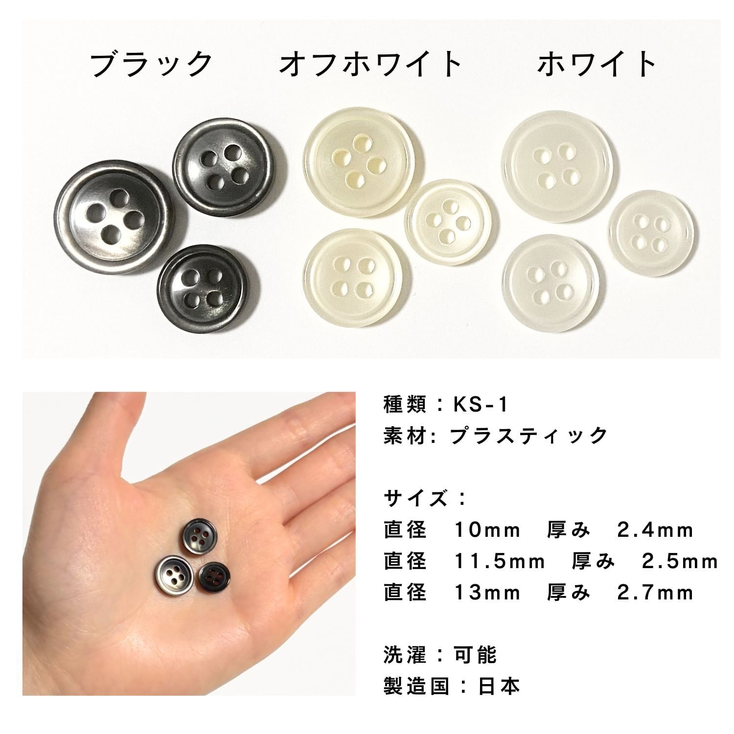 haoa 貝調ボタン 1個 単品 バラ売り 【10mm】 樹脂製 キングシェル 細フチタイプ KS1 日本製 シャツ Yシャツ 4つ穴 フロント 袖口 洋裁 洋服 手芸 クラフト 直径 10mm 11.5mm 13mm 白 黒 (1個,10mm)