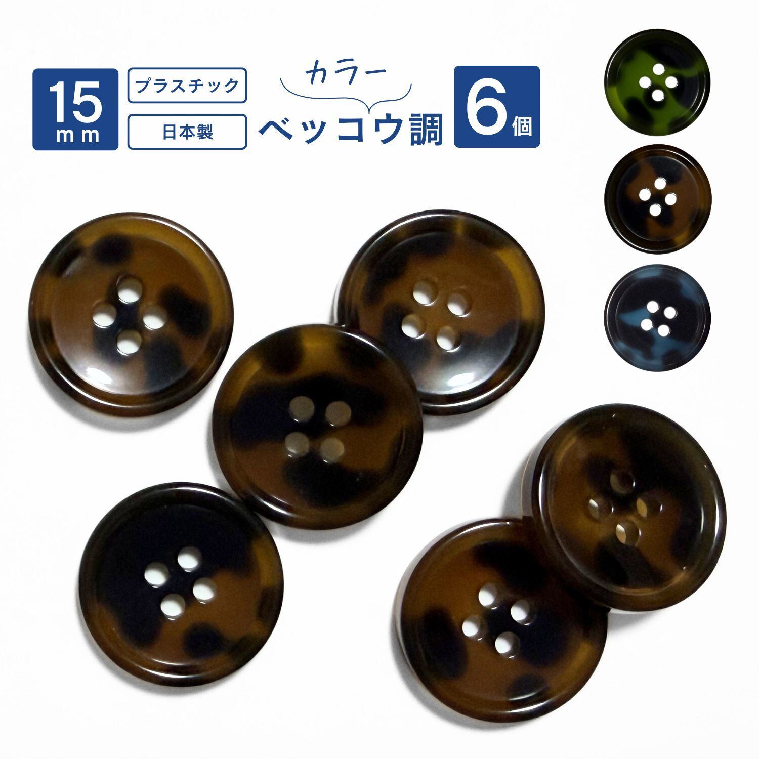 haoa 15mm ボタン アウター用 シャツ用 カラーベッコウ調 6個セット 樹脂製 CBK-1 日本製 4つ穴