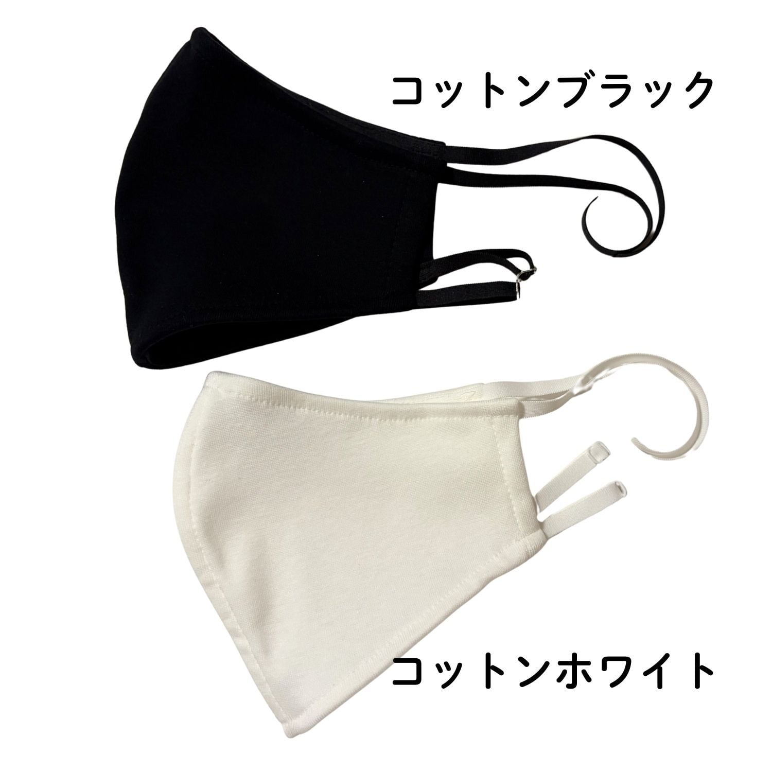 ※耳ゴムは非常にソフトな平ごむで、長さ調節が可能。